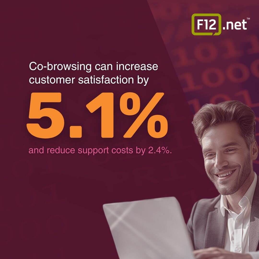 • Onboarding assistance: To help new customers set up their accounts or configure their settings. Co-browsing can increase customer satisfaction by 5.1% and reduce support costs by 2.4%.